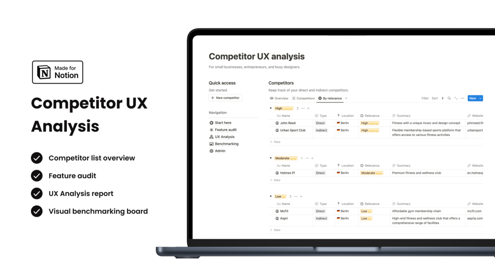 Competitor UX analysis for small businesses, entrepreneurs, and busy designers