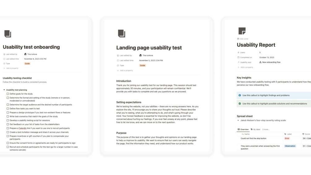 This is the resource I wish I had when I started conducting usability tests. The goal of this test planner is to help your business identify and fix issues early in the design and development process, reducing the cost of a bad user experience or unnecessary changes later on.