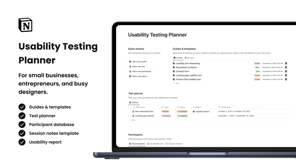 Usability Testing Planner for small businesses, entrepreneurs, and busy designers
