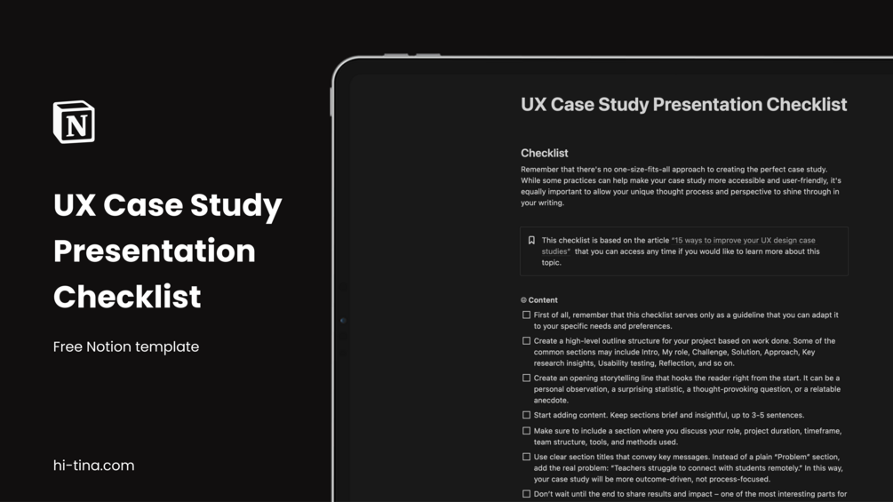 Plan out your new UX case study with this checklist to make sure you've covered all the necessary steps